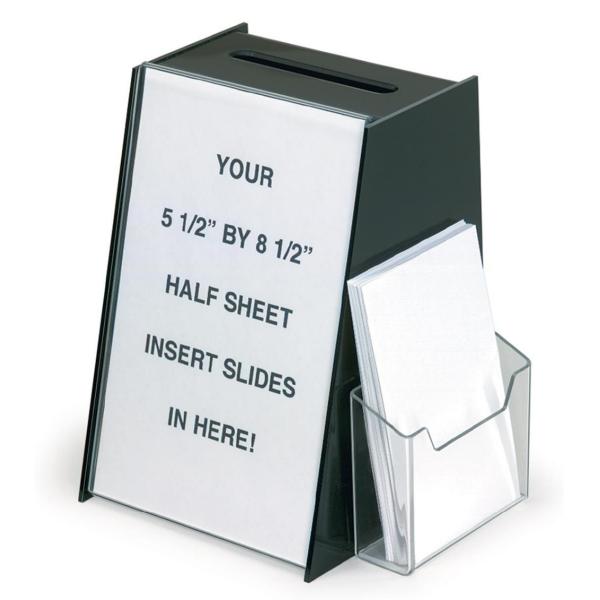 Black Acrylic Ballot Box Suggestion Boxes W 5.5 x 8.5 Sign Holder & Side Pocket